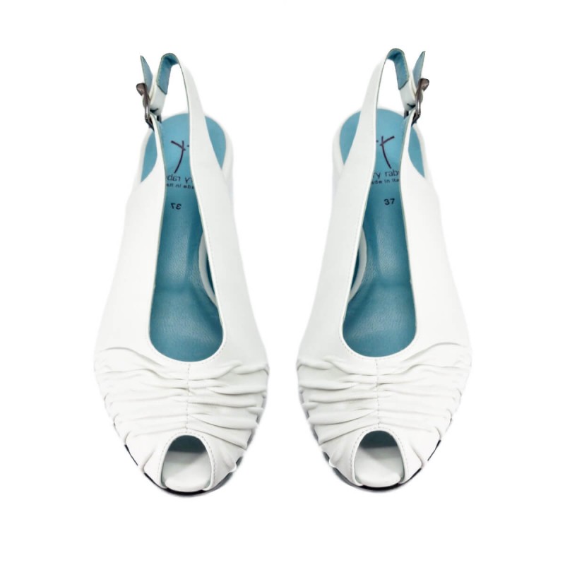 La sandale compensée en cuir blanc - Thierry Rabotin