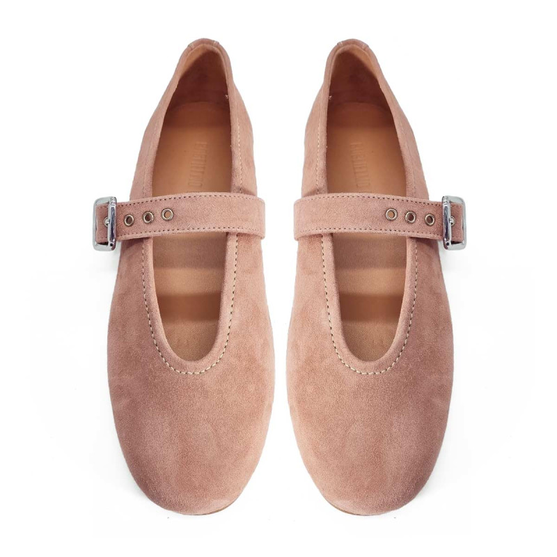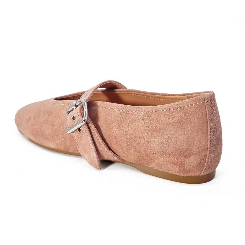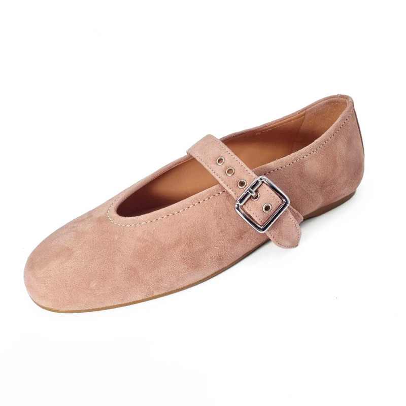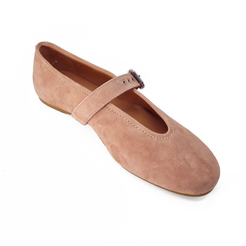 Ballerine en daim rose signée Guglielmo Rotta, féminine et délicate. Sa bride réglable sur le dessus assure un maintien parfait du pied tout en apportant une touche élégante. Une chaussure confortable et raffinée pour accompagner vos tenues avec douceur.