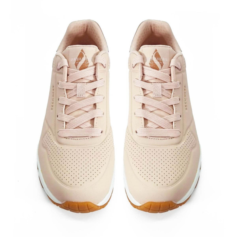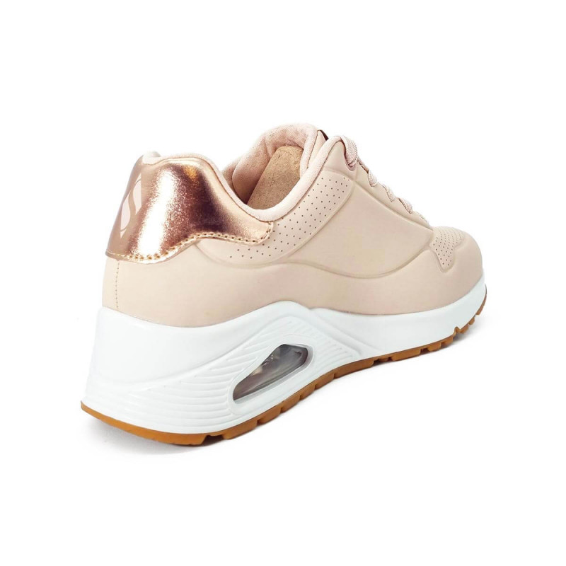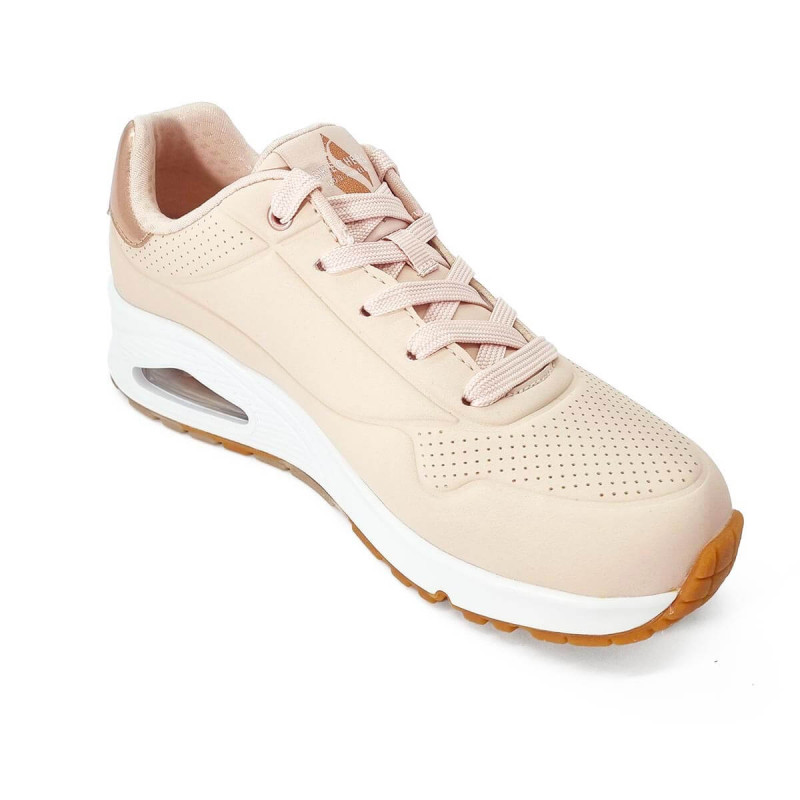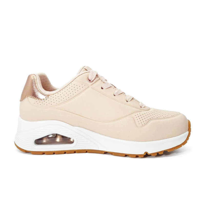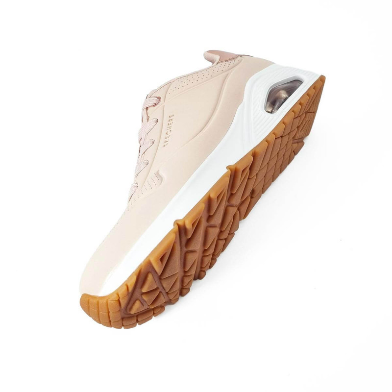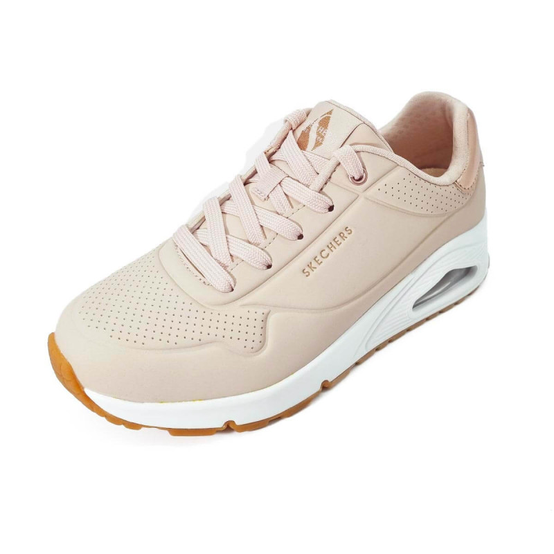La Skechers Uno rose pâle séduit par son style doux et féminin. Souple, légère et associée à la semelle Skech-Air® à coussin d’air visible et à l’Air-Cooled Memory Foam®, garantit un confort optimal et une allure sportive.