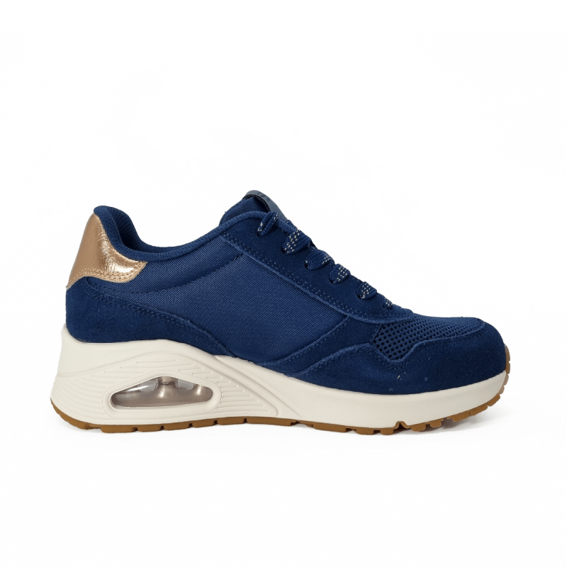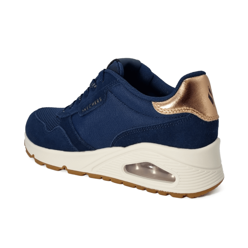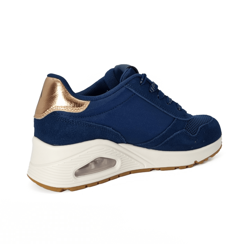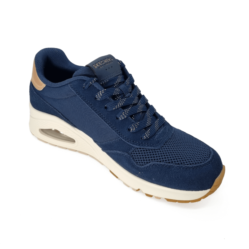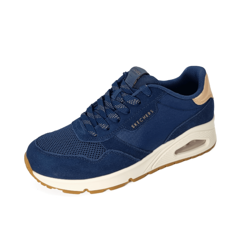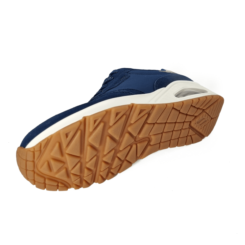Découvrez la basket Skechers Vintage Air en marine, alliant style rétro et confort optimal. Sa tige en daim et textile offre légèreté et respirabilité, tandis que sa semelle à coussin d’air et à mémoire de forme assure un confort durable à chaque pas.