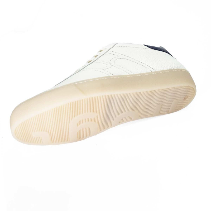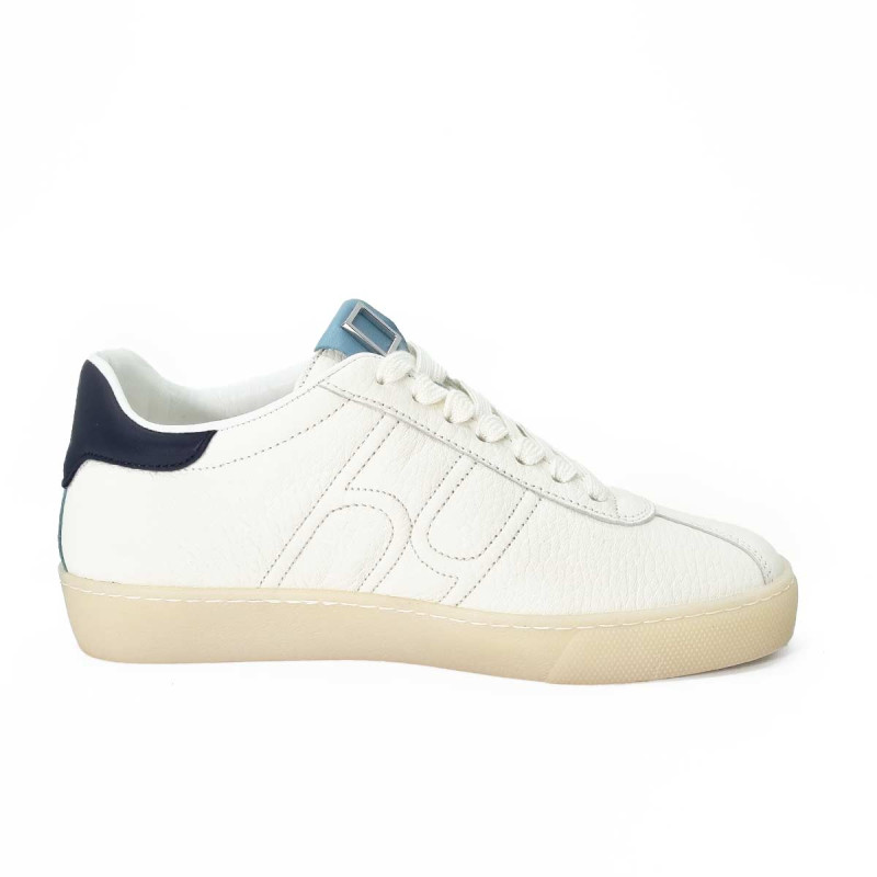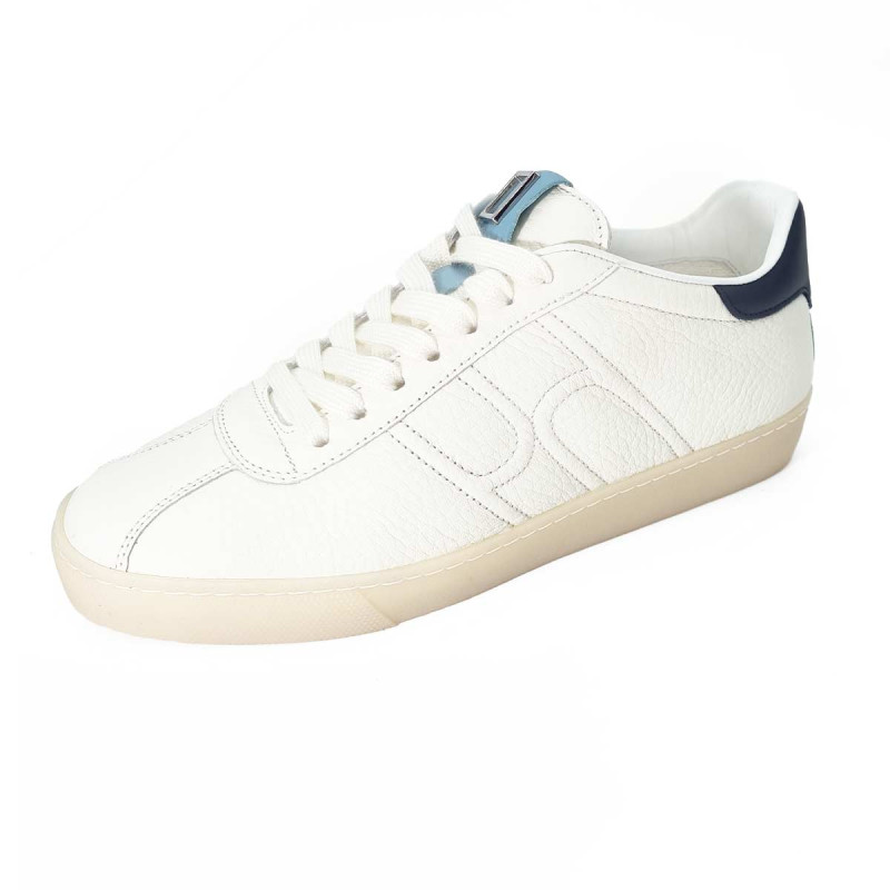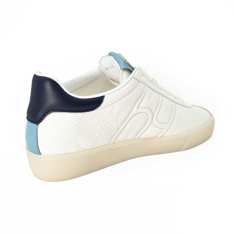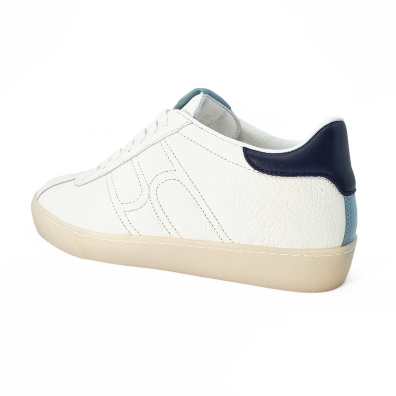 • - Tige en cuir blanc avec languette en cuir bleu