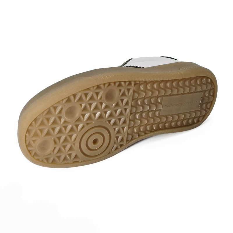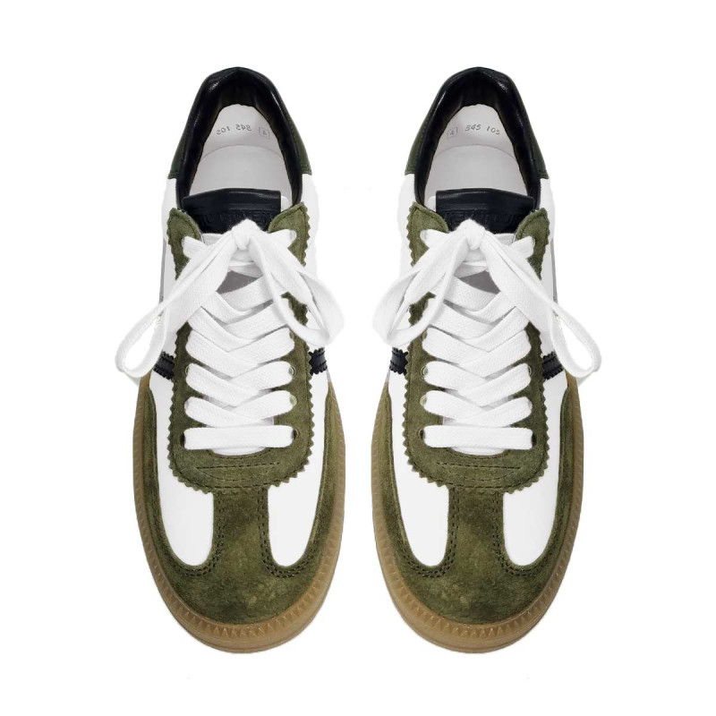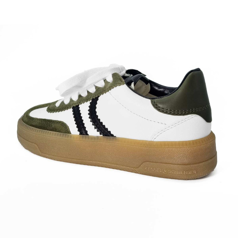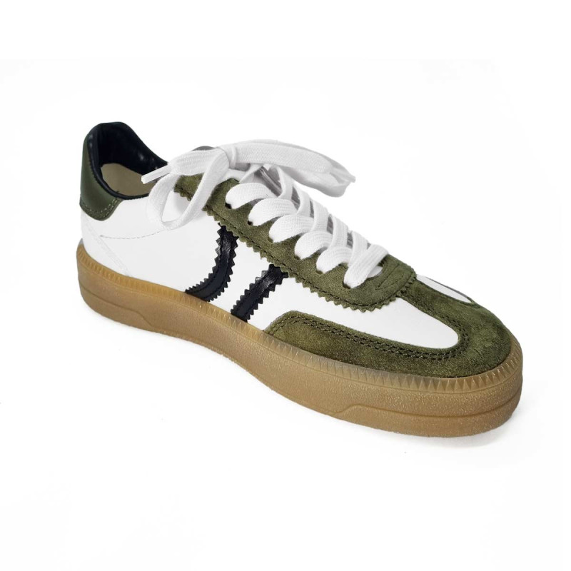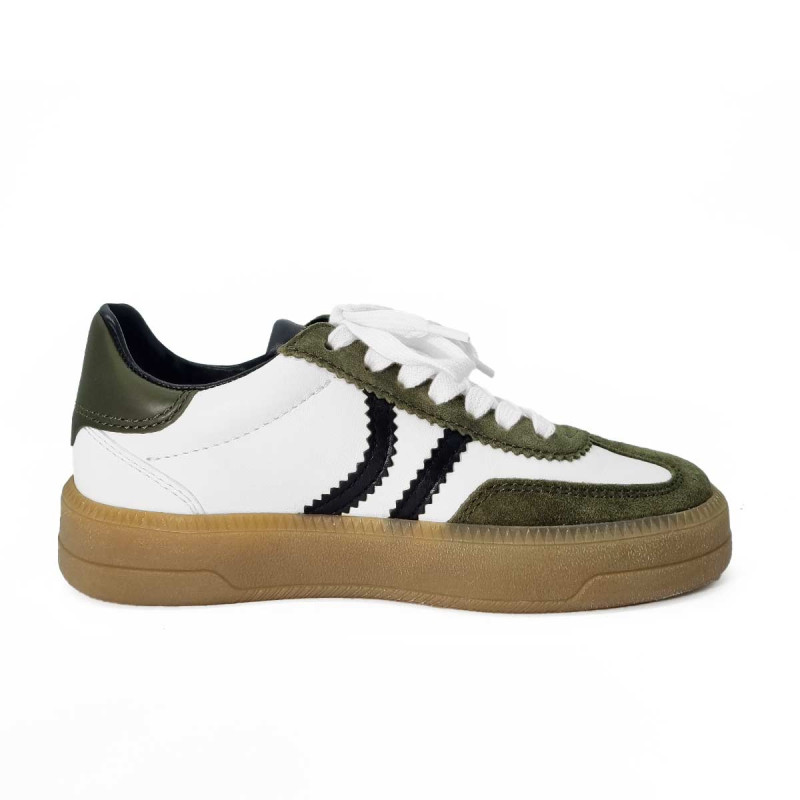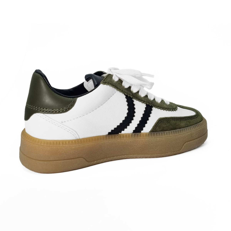 - - Tige en cuir blanc, détails kaki et noir