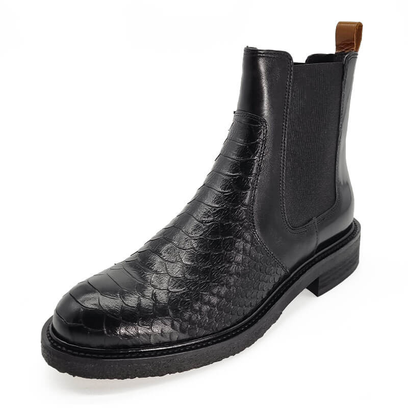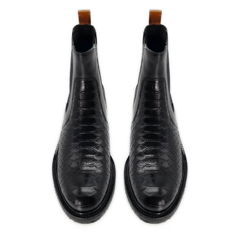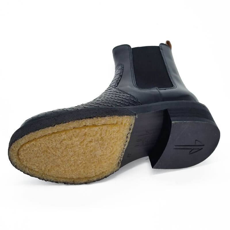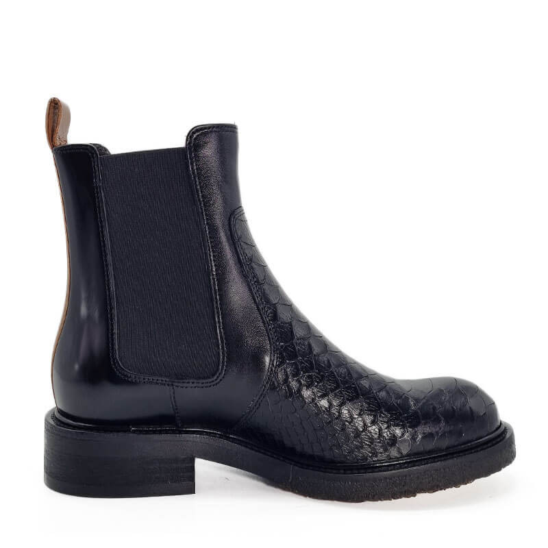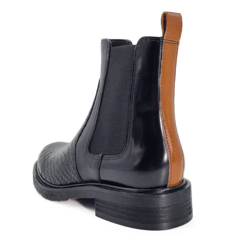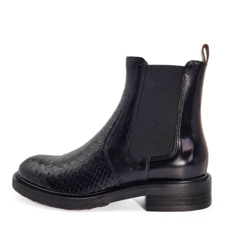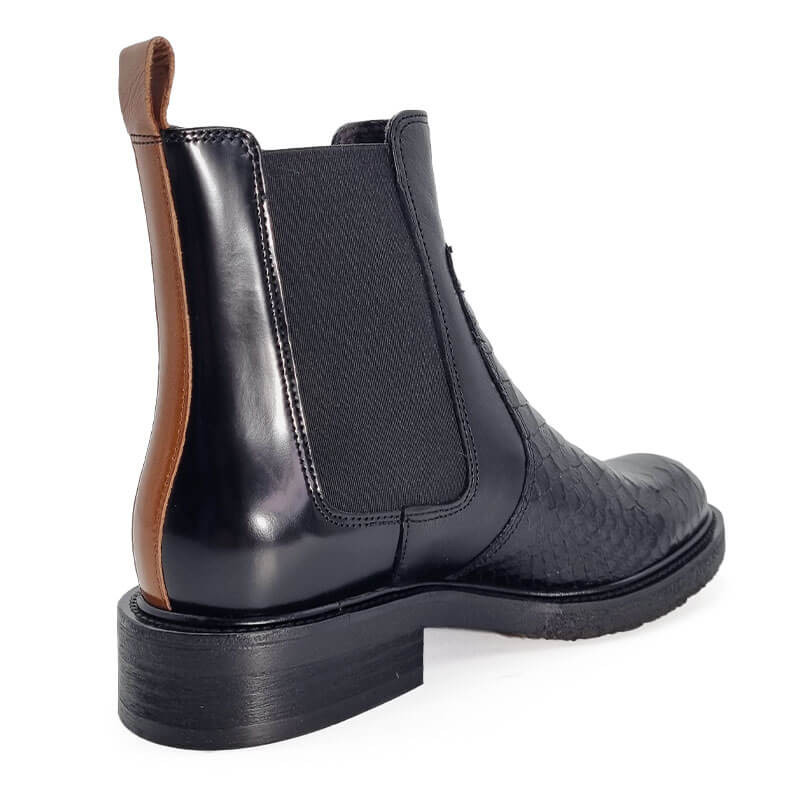 - - Tige en cuir noir, imprimé croco