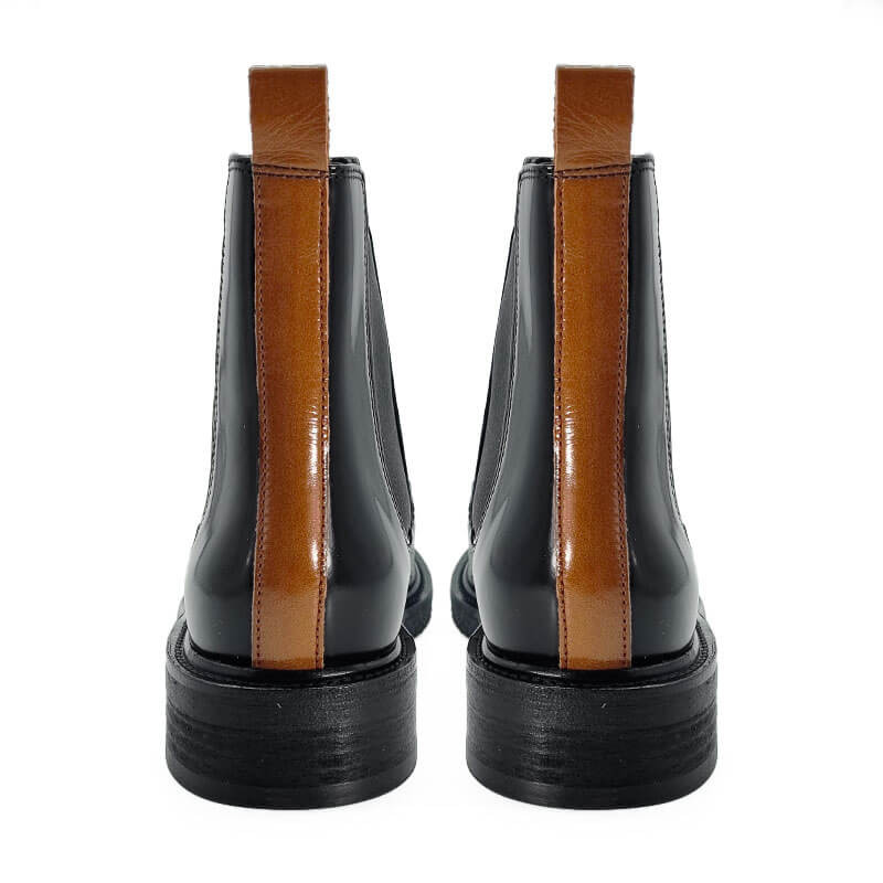 Un classique revisité avec caractère. Cette bottine signée Billi Bi associe avec audace un cuir lisse profond et un avant en cuir imprimé croco, pour une silhouette structurée et contemporaine. La forme Chelsea, rehaussée d’un élastique latéral large, assure un enfilage facile et un maintien parfait.