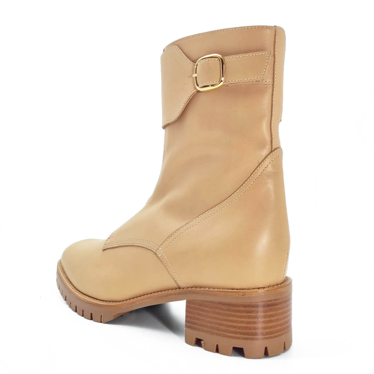 Signée Maretto, cette bottine beige au cuir souple et lumineux se distingue par son talon carré et sa fermeture zippée à l’avant. Fabriquée à la main en Italie, elle conjugue tradition artisanale et modernité. Confortable et élégante, elle s’adapte aux looks du quotidien.