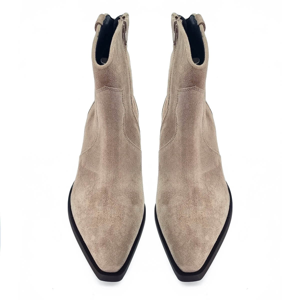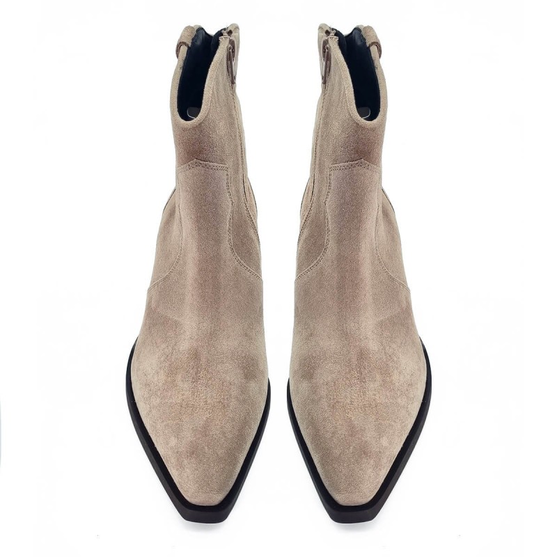 Pour la saison, optez pour la bottine western Hogl en daim beige revisite avec élégance l’esprit cowboy. Son cuir velouté et sa coupe féminine apportent une touche tendance et raffinée à vos tenues. À la fois moderne et intemporelle, elle s’adapte parfaitement aux looks urbains et décontractés.