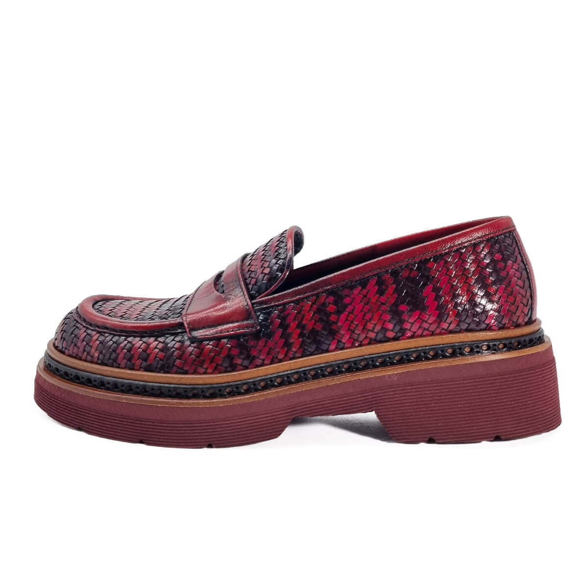 Mocassin cuir tressé rouge et noir - Pons Quintana