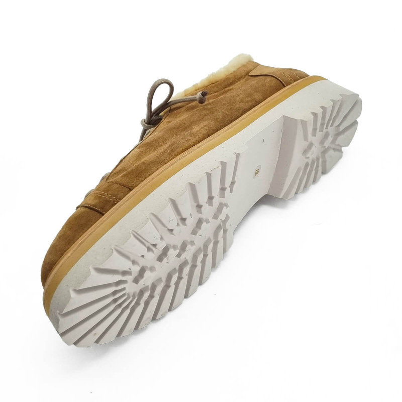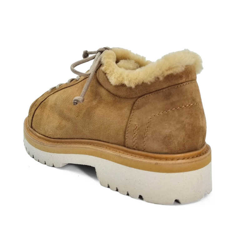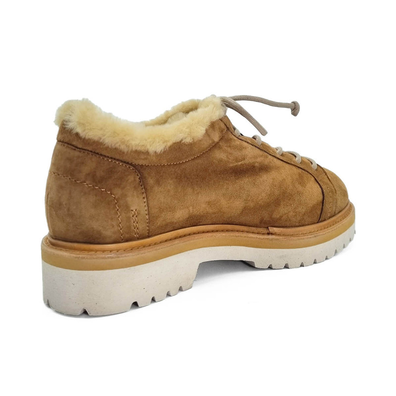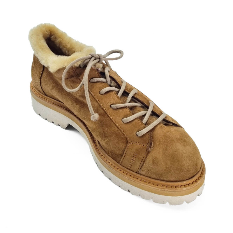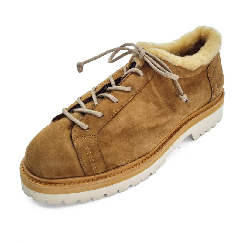 Le derby Maretto en daim camel associe luxe et confort grâce à sa doublure en laine véritable. Parfait pour affronter la saison froide, il assure chaleur et élégance. Sa semelle robuste et son cuir souple témoignent d’un savoir-faire italien d’exception.