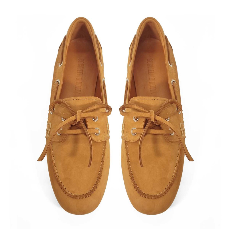 Mocassin style bateau en nappa d’agneau camel signé Guglielmo Rotta, alliant élégance italienne et confort exceptionnel. Son cuir souple épouse parfaitement le pied pour un porté agréable au quotidien. Un modèle chic et intemporel, idéal pour un style casual raffiné.