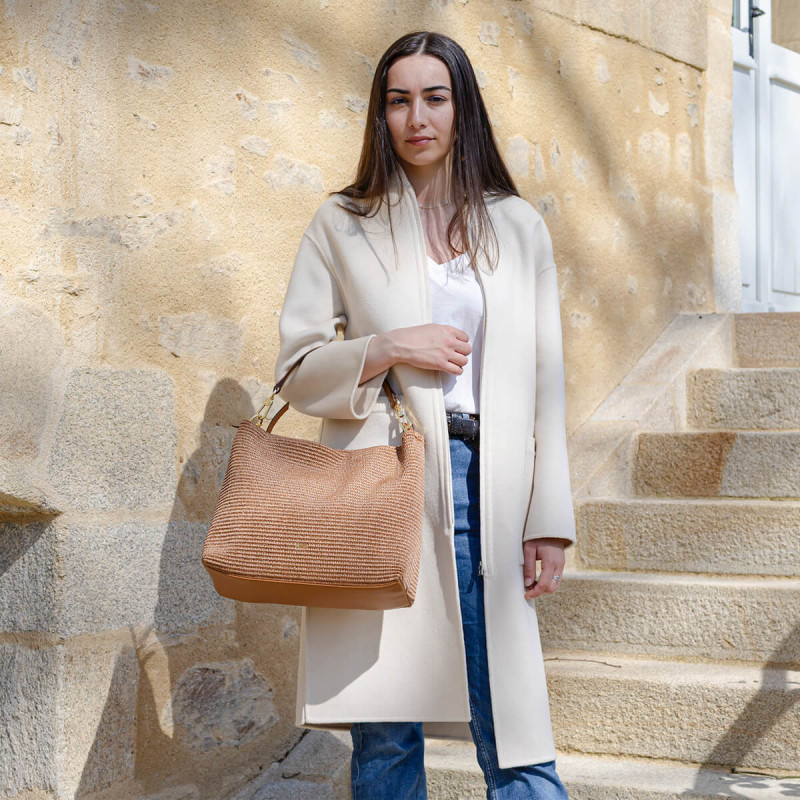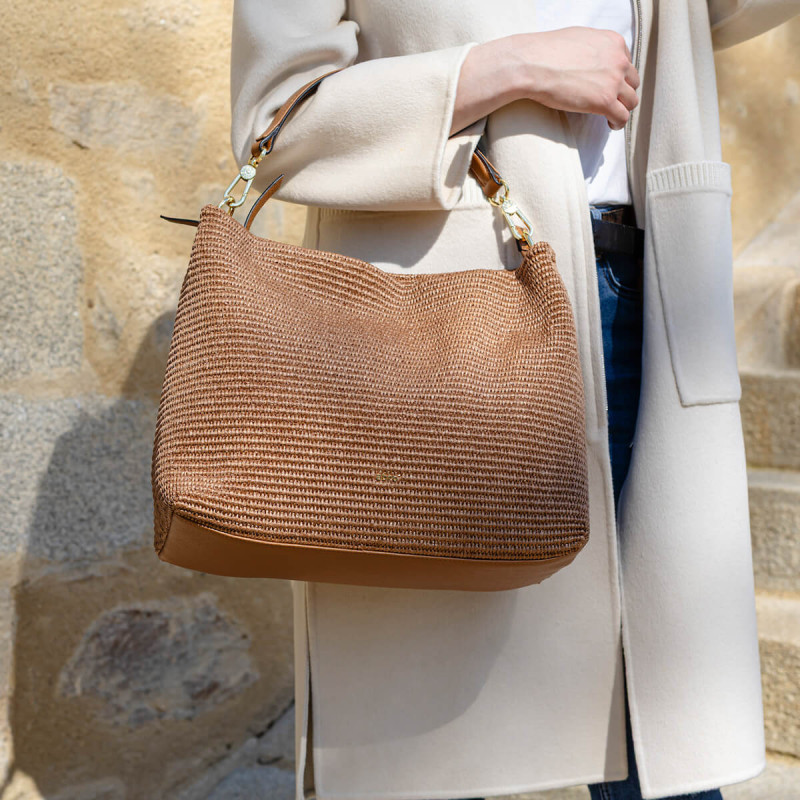 Douceur et naturel sont les maîtres mots de ce sac Hobo en raphia marron de la marque allemande Abro. Parfait pour le printemps-été, il apporte légèreté et élégance à toutes vos escapades.