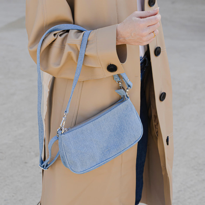 Fun et moderne, ce sac en denim bleu clair joue sur le contraste des textures pour un look jeune et décontracté, parfait pour les journées en ville. Entièrement fabriqué en toile de jeans avec une doublure 100 % coton, il propose style et confort au naturel.