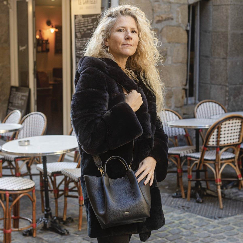 Ce cabas ENSSENTIAL en cuir noir se distingue par son esprit chic et luxueux, tout en offrant un excellent rapport qualité-prix. Sa forme sobre et moderne en fait un incontournable du dressing. Un sac que l’on porte en toute occasion.