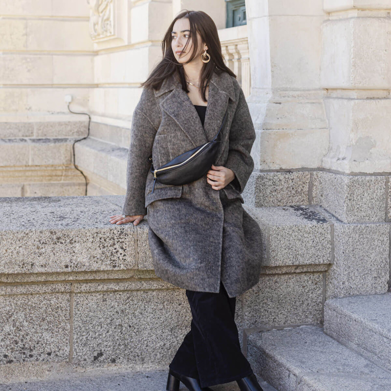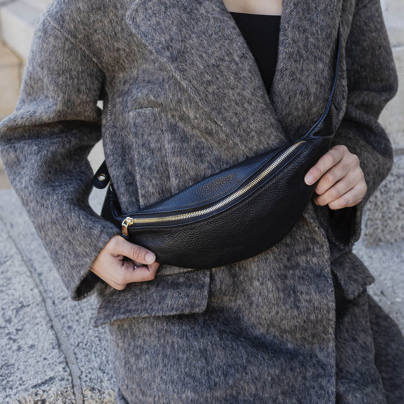 Sac banane en cuir noir - Abro