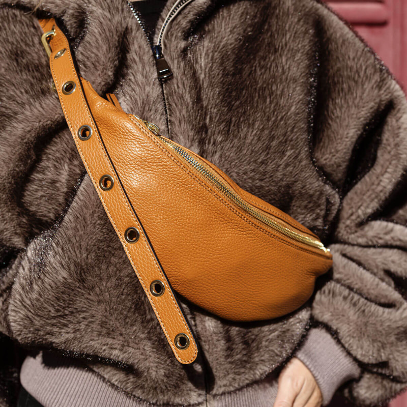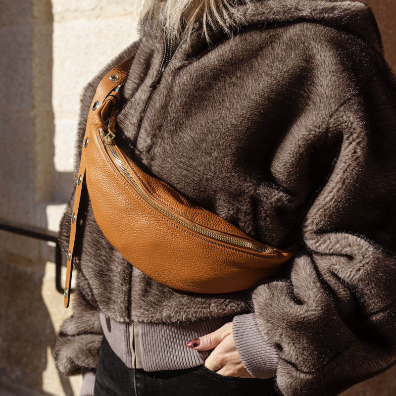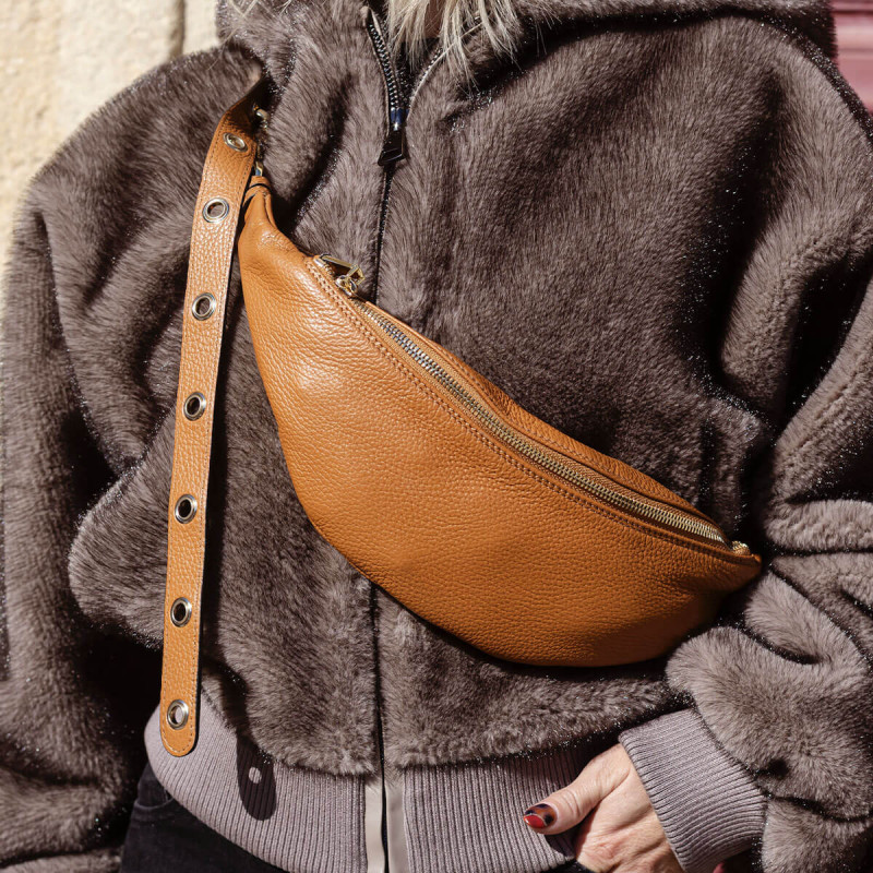 Sac banane en cuir camel - Abro