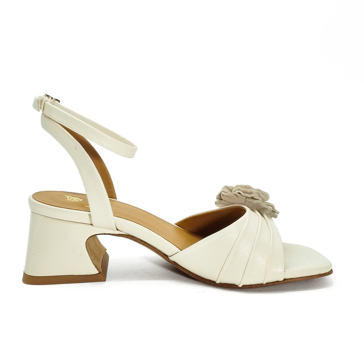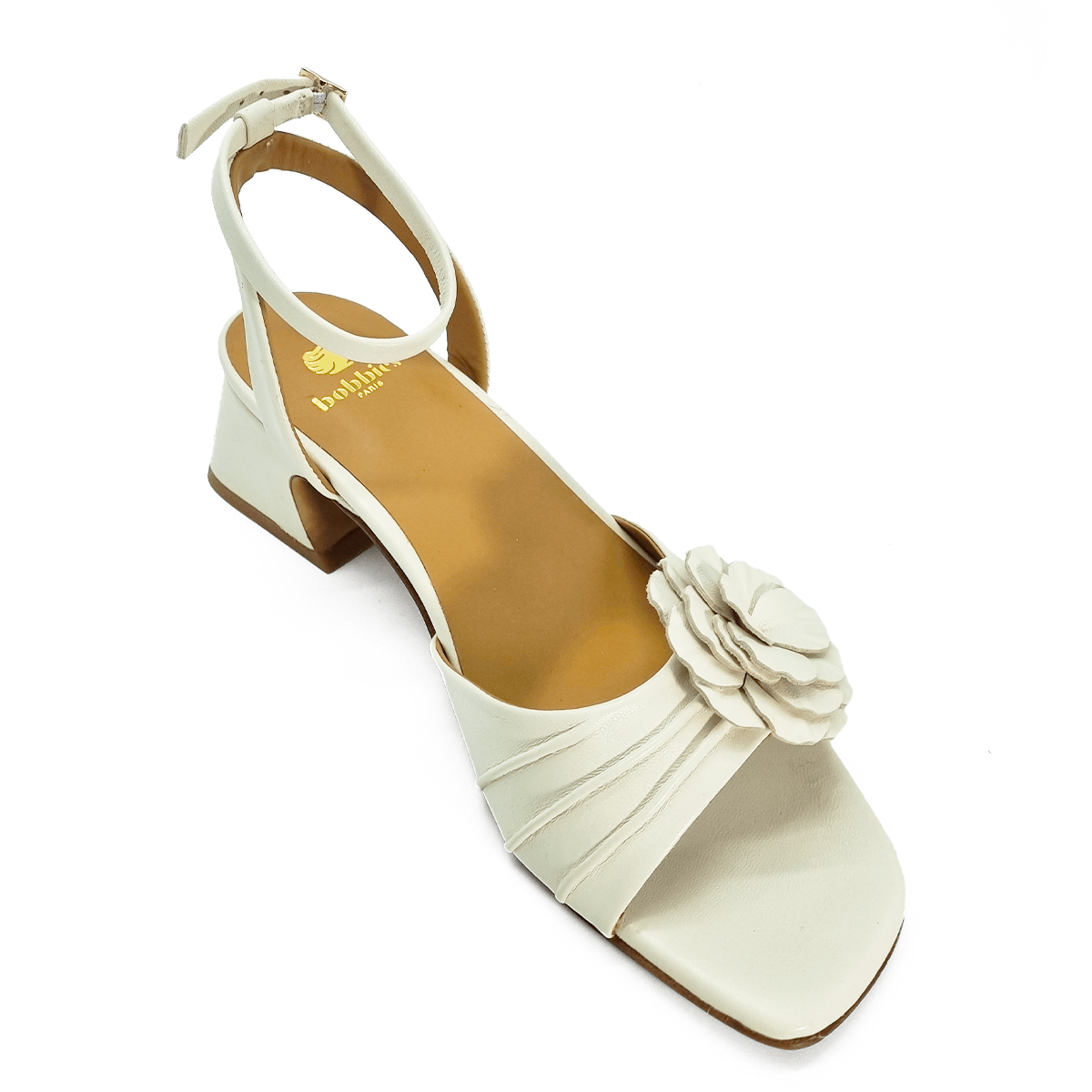 Cette saison, succombez au charme de cette sandale en cuir d'agneau blanc signée Bobbies. Son petit talon vous permet de la porter confortablement tout au long de la journée, tandis que sa bride ajustable à la cheville assure un maintien optimal.