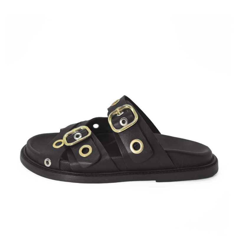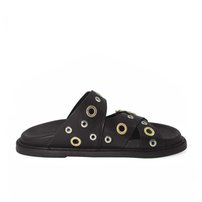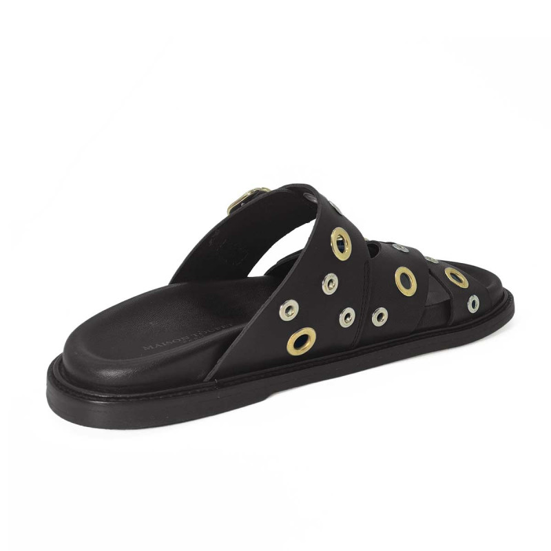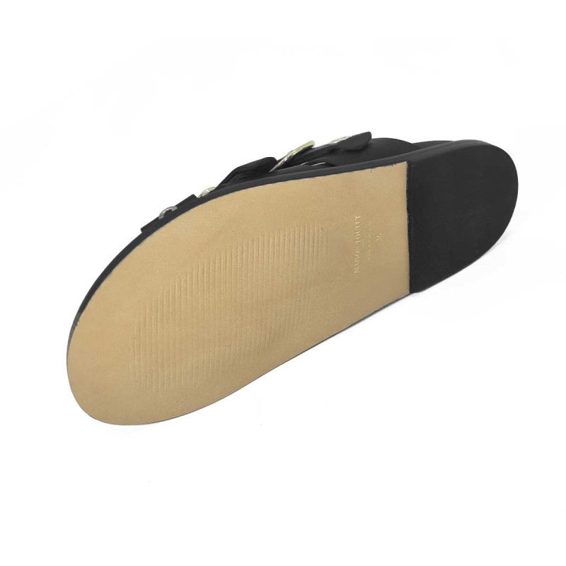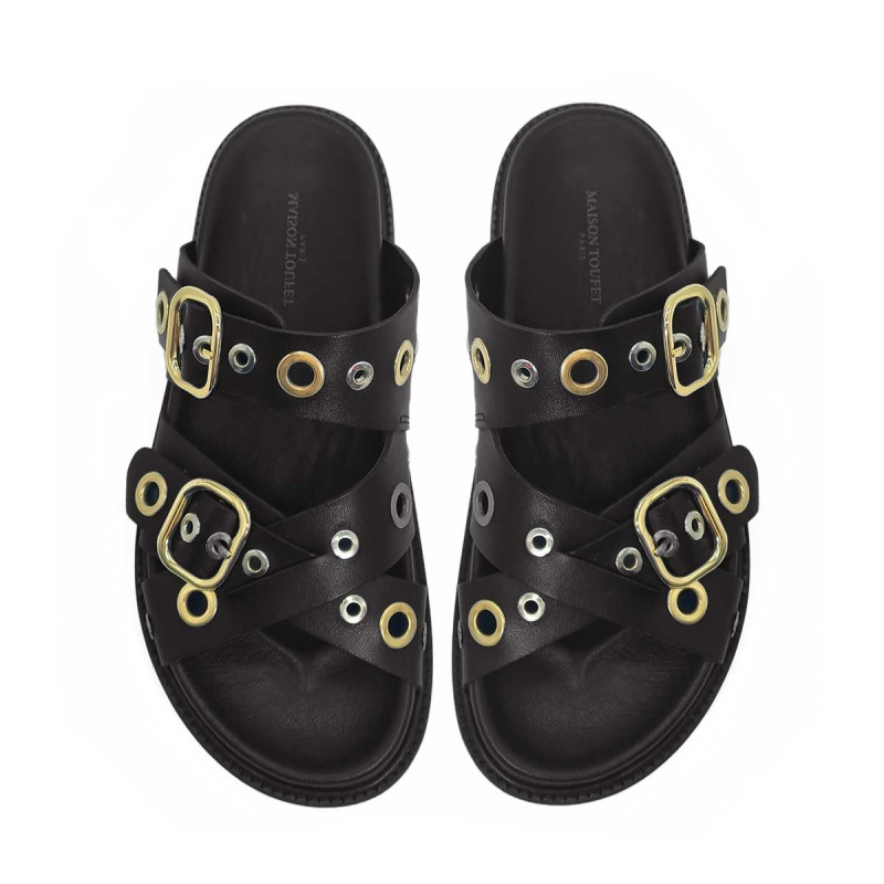 Mule Karine cuir noir avec œillets – Maison Toufet