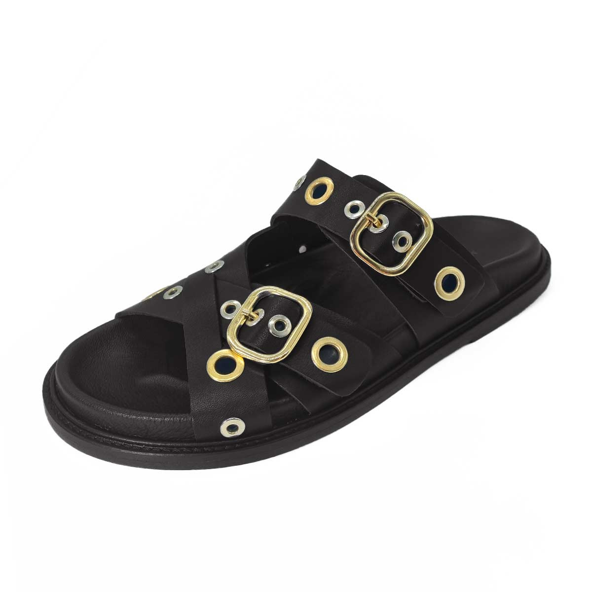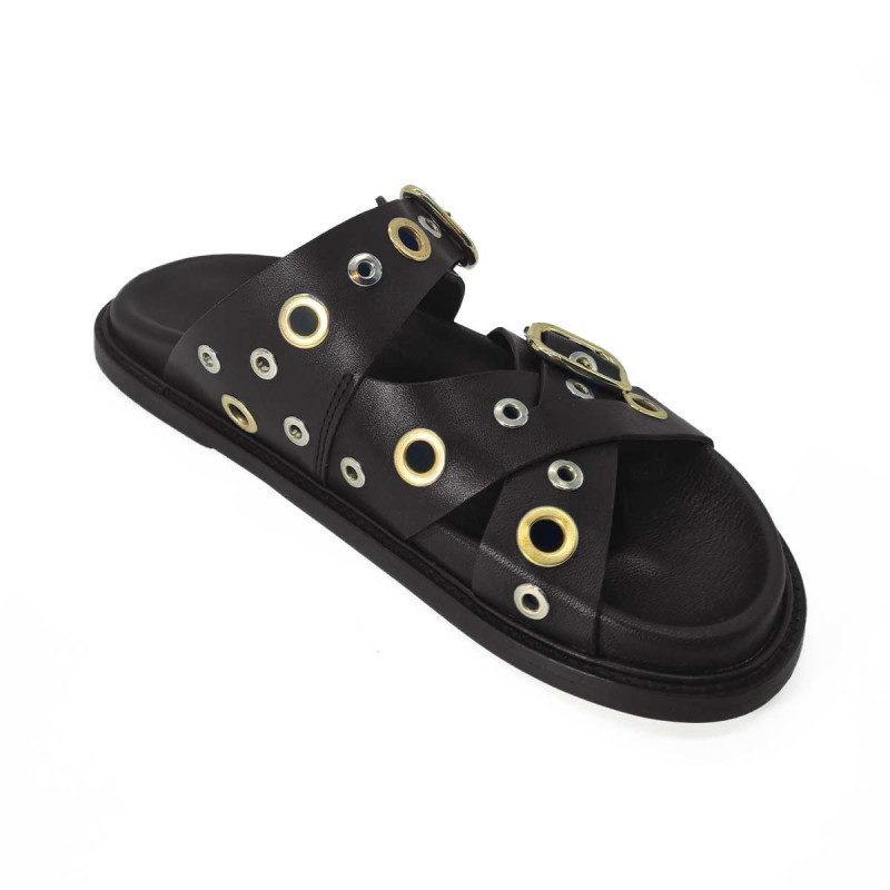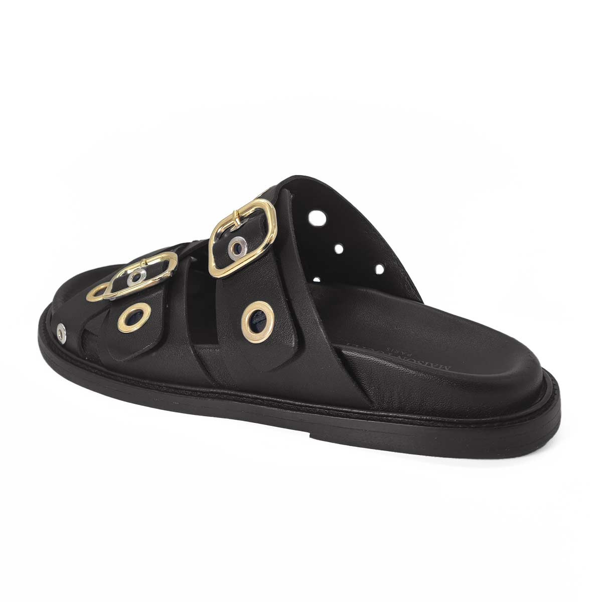 Mule Karine cuir noir avec œillets – Maison Toufet