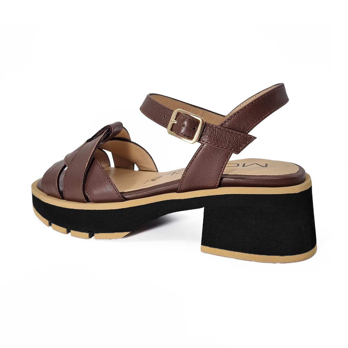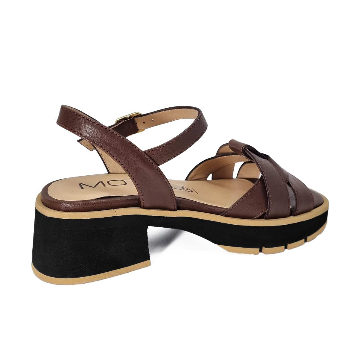 Avec son allure affirmée, cette sandale en cuir marron Mot Clé repose sur une semelle épaisse au style contemporain. Le jeu de teintes noir et camel apporte du caractère à ce modèle polyvalent. Idéale pour un look casual maîtrisé.