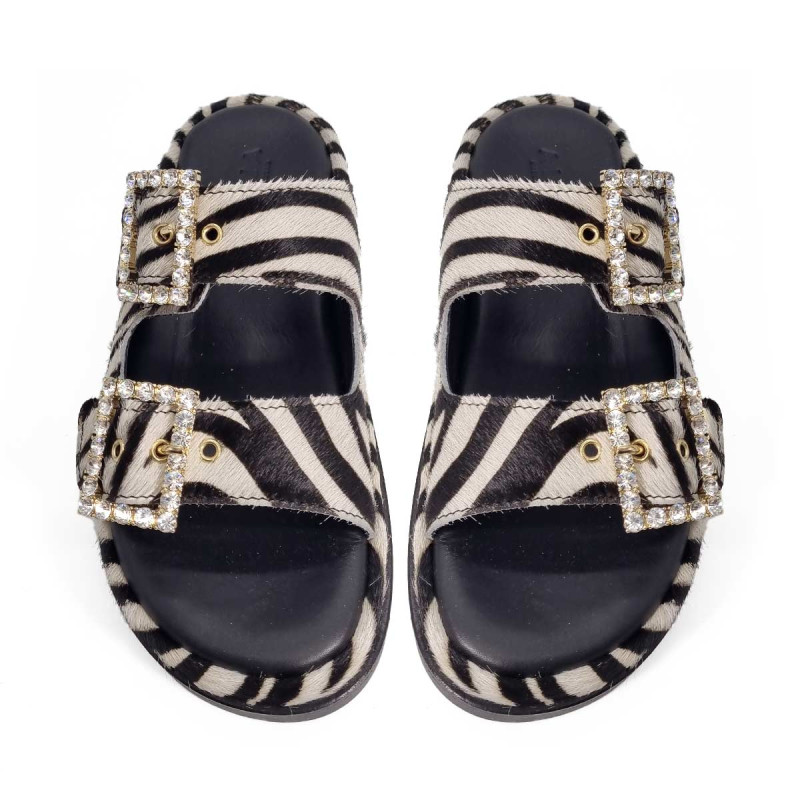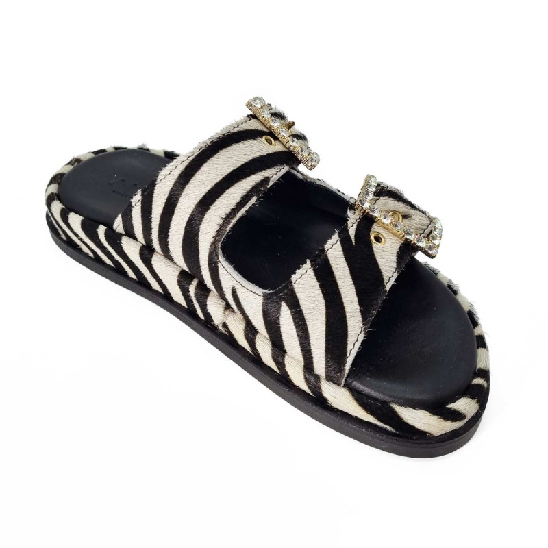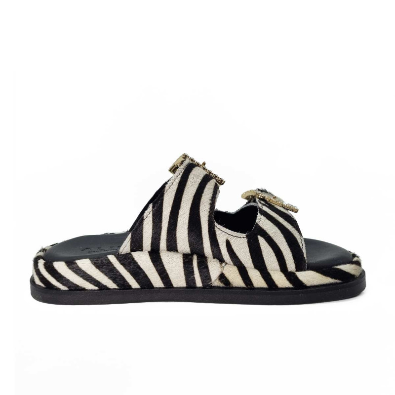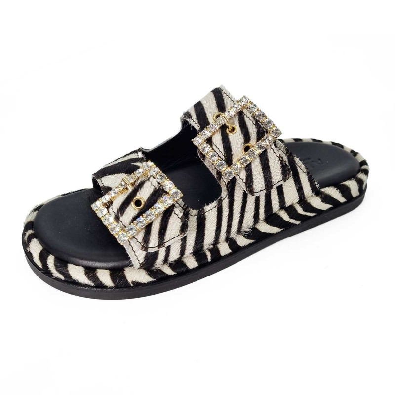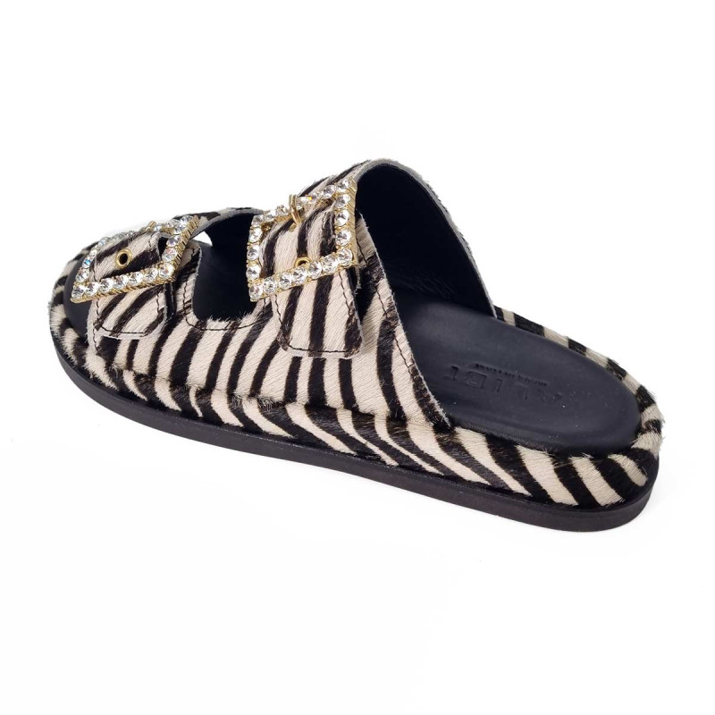 Mule cuir zébré, boucles strass - Alibi
