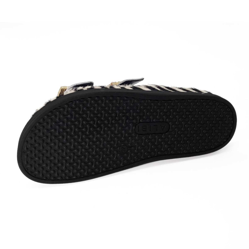 Audacieuse et tendance, cette mule ALIBI en cuir motif zébré ne passe pas inaperçue. Ses boucles en strass subliment le design avec éclat. Sa semelle confortable en fait une alliée idéale pour vos journées actives.
