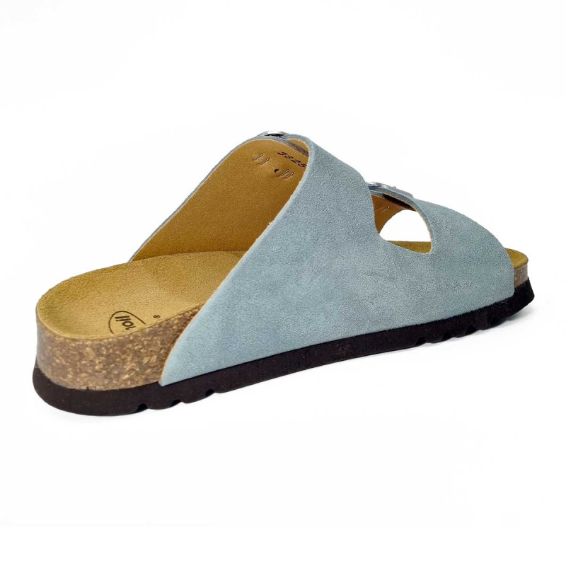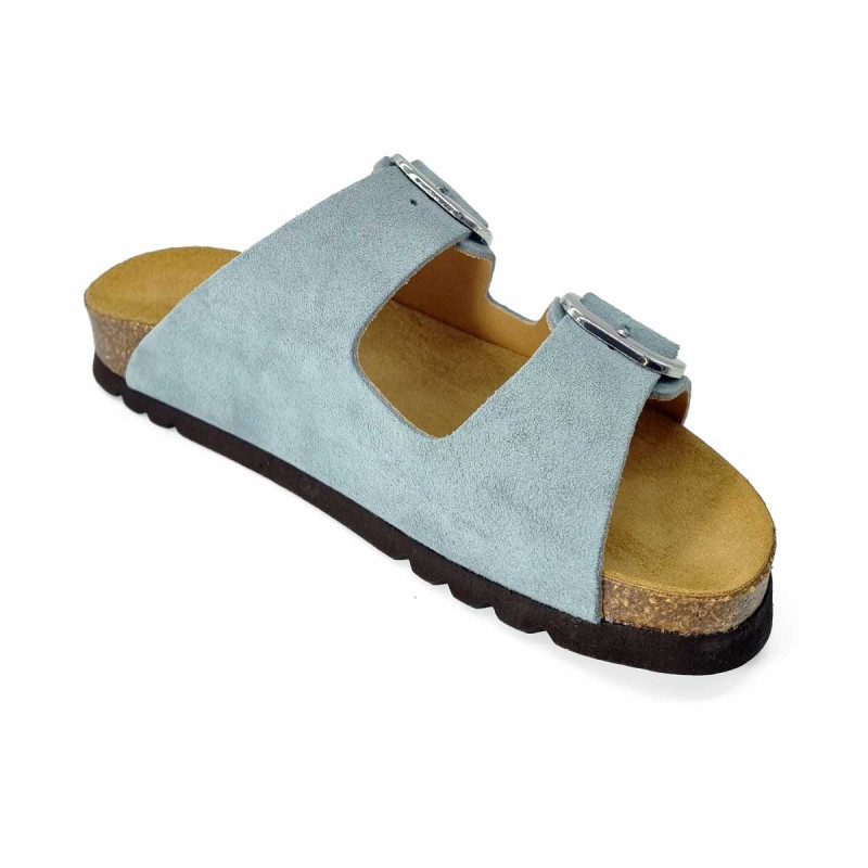 Sandale Scholl modèle NOEL en daim bleu, élégante et facile à porter au quotidien. Sa matière douce et sa conception confortable en font une alliée idéale pour l’été, apportant une touche de couleur raffinée à vos tenues.