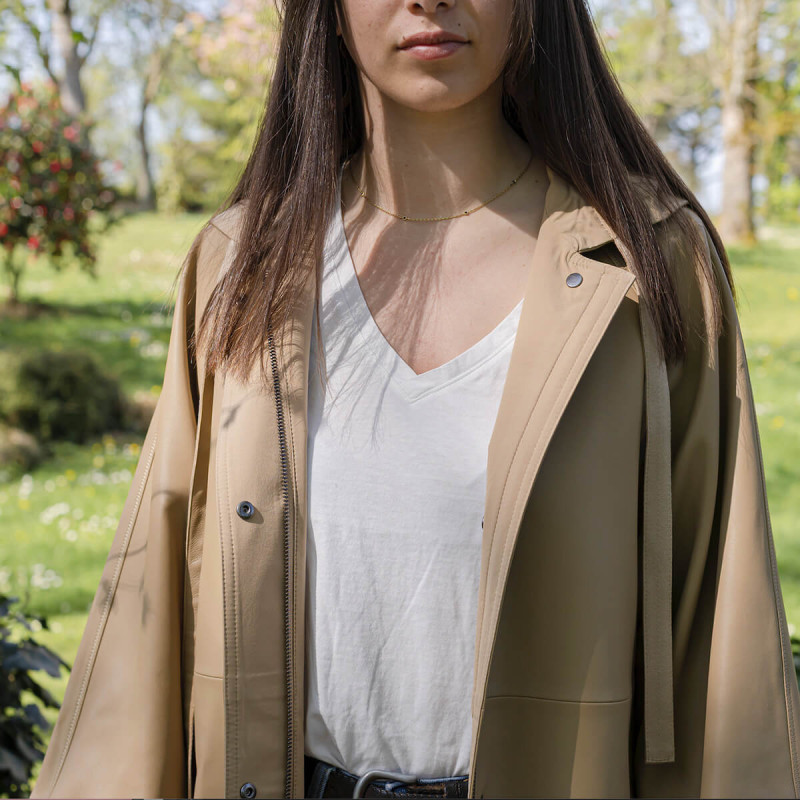 Manteau en cuir d'agneau beige - Lou Andréa